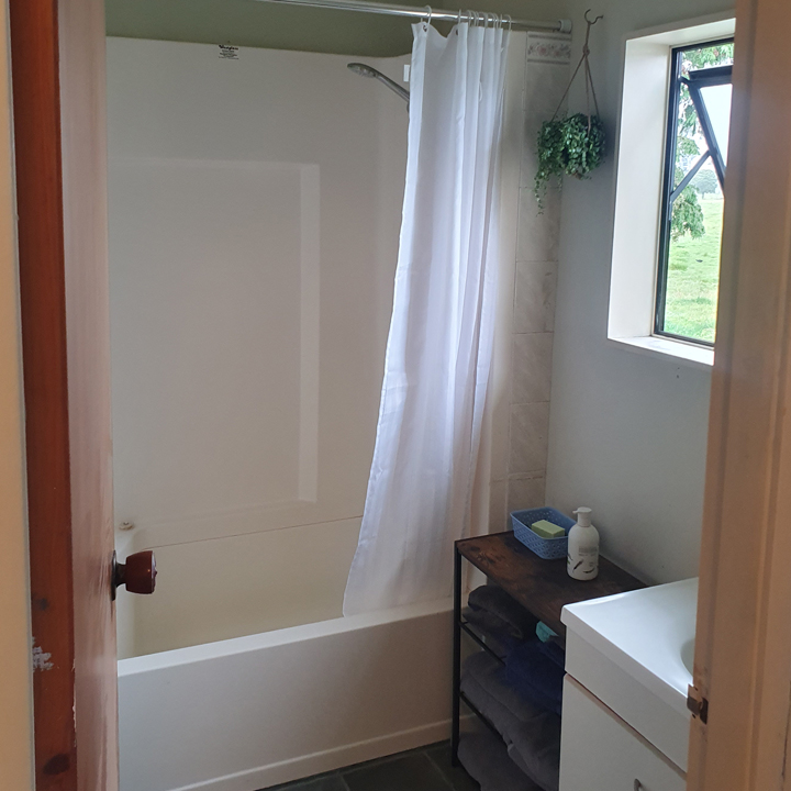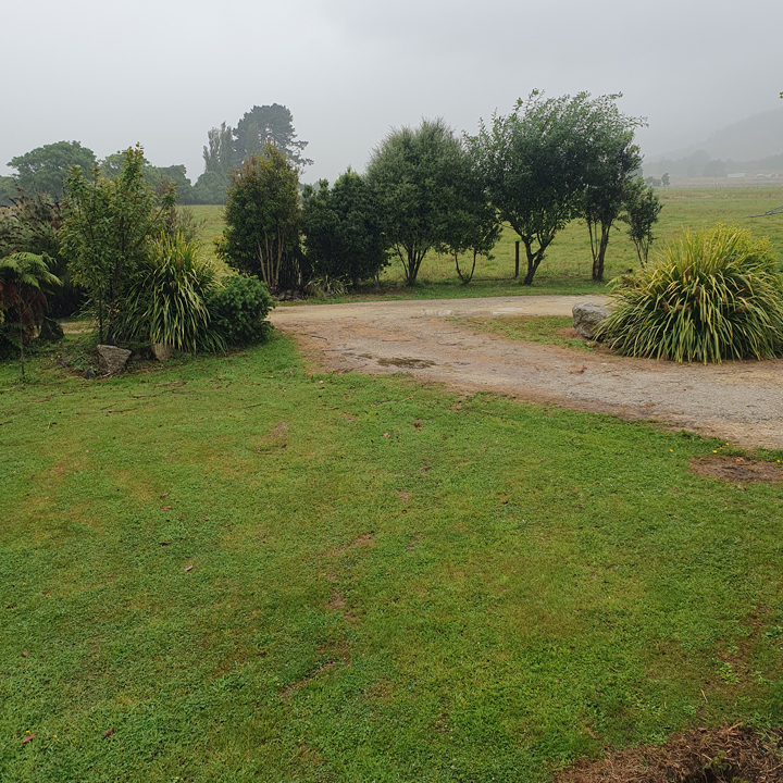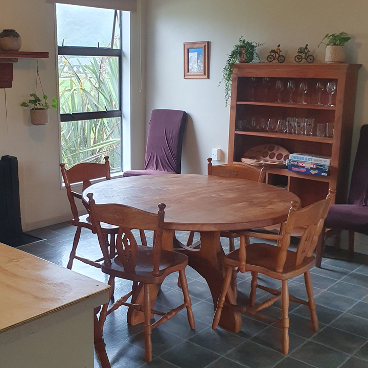 It has a large garden and is set well off the road with no neighbours. Five minutes walk to the village and directly across the road from a great swimming spot in the Karamea River.